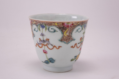Wit kommetje met op de buitenzijde een meerkleurig cartouche decor met oa, Van Diepencollectie, JMD-P-2358 |