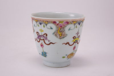 Wit kommetje met op de buitenzijde een meerkleurig cartouche decor met oa, Van Diepencollectie, JMD-P-2360 |