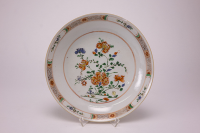 Wit rond bord met op het plat een famille verte decor, Van Diepencollectie, JMD-P-2382 |