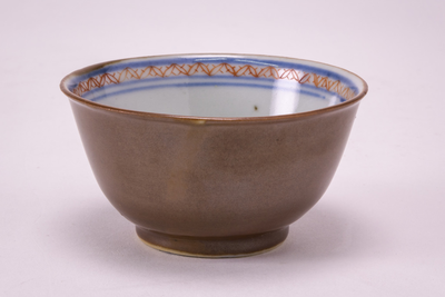 Capuceiner kommetje met aan de binnenzijde een decoratie in blauw, ijzerrood en goud, Van Diepencollectie, JMD-P-2605 |