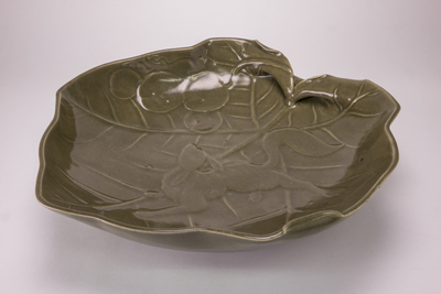 Een groene Celadon schotel in de vorm van een blad, daterend van c, Van Diepencollectie, JMD-P-3134 |