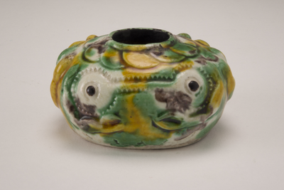 Spinage and eggs geglazuurd inktpotje in de vorm van een krab. Een Chinese sancai-geglazuurde penselenwasser in de vorm van een krab (Nederlands)