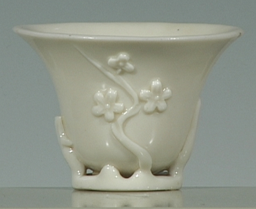 Libation cup. Magnolia kop, de ovale kelk rust op twee takjes; de naar buiten oplopende kelk is aan twee zijden met een takje met bloeiende prunussen in reliëf versierd.