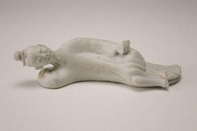 Beeldje van een persoon, een liggende vrouw, gebruikt als wandplastiek, afkomstig uit scheepswrak de Geldermalsen. (Was in permanente bruikleen van dhr.van Diepen aan het Groninger Museum onder nummer; GR 1986.714) (Nederlands)